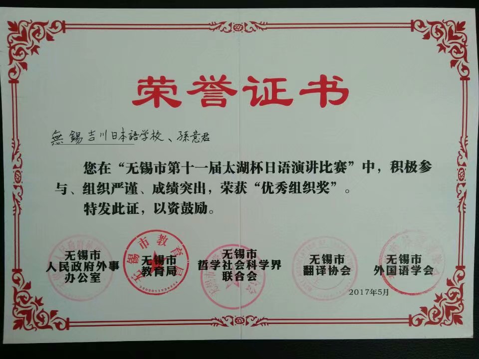 无锡市第十一届太湖杯日语演讲比赛“优秀组织