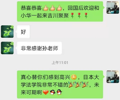 2020年11月7日,这是值得纪念的一天,明日叶优秀学员华辰轶,曾今非常向往的日本名校-“日本大学”,以及非常向往的专业“法学”总算向他伸出了橄榄枝,(无锡日本留学中介机构排名--明日叶)其母亲也第一时间向我们发来了喜报,真的是隔着屏幕都能感受到学生妈妈的激动心情!真的是功夫不负有心人啊!真的是经过了很多的困难与挫折~在N次落榜之后~仍然顶住压力~不放弃不服输!最终圆梦自己喜欢的“日本大学”法学院!作为明日叶的所有老师,真心替他感到高兴!(无锡日语留学班--就在明日叶)这是一所非常不错的学校,专业也非常不错,将来如果做日本律师是非常不错的选择,未来可期~!!