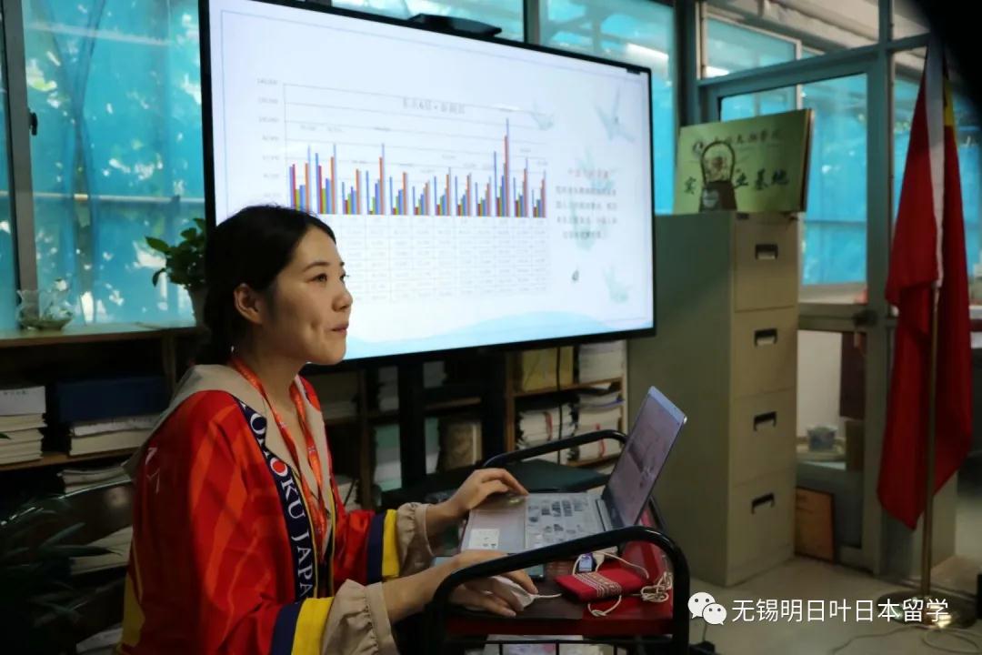 接下来是我们的主人公上场了,来自日本东北观光推进机构的刘朦老师穿上了日本当地特色的外衣,用温柔的话语向大家作了自我介绍,然后通过PPT和视频切换的方式,向在场**组的每位日语爱好者详细介绍了日本东北的情况,风景~民俗~教育~医疗~节日等一个不少,让大家切实的感受到了日本东北的魅力。(无锡日本留学预科--明日叶)