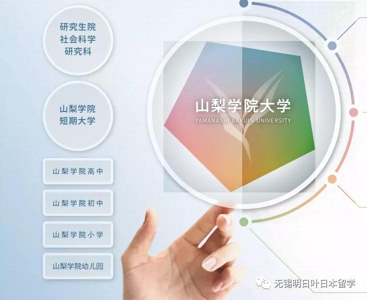 山梨学院大学创立于1946年,坐落于日本山梨县甲府市,是一所拥有5个学院5个学科的具有国际特色的知名综合性私立大学。学校法人山梨学院不仅拥有大学,(无锡留学服务中心--明日叶) 还包括幼儿园,小学,初中,高中,短期大学,研究生院,是一体化综合性的教育集团。