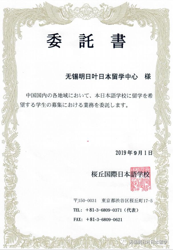 授予明日叶日本留学招生委托书: