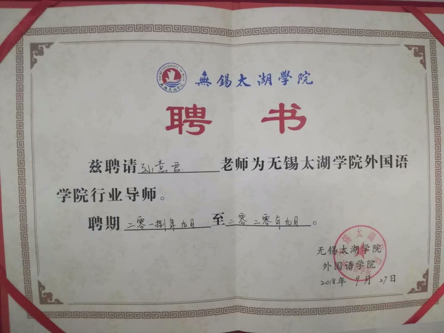 明日叶孙意君校长受聘为无锡太湖学院外国语学