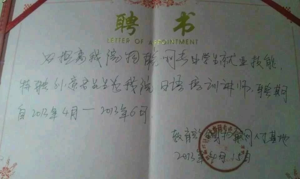 明日叶孙意君校长受聘为物联网人才基地日语培训讲师