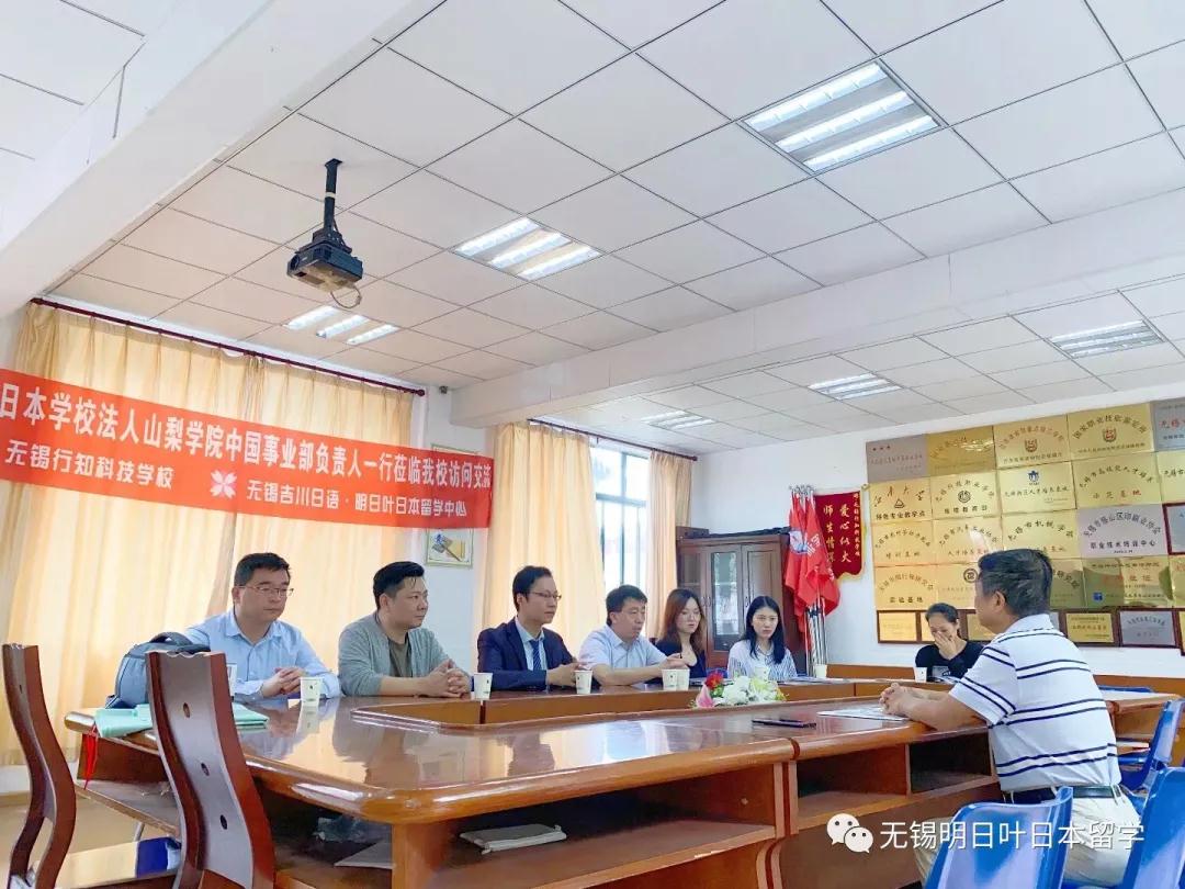2020年9月22日,日本山梨学院大学事务所所长一行3人,在无锡明日叶日本留学中心孙校长的带领下,共同前往无锡行知科技学校参观交流(无锡中日国际班--明日叶),访问团一行受到了行知学校执行校长-徐校长以及师生们的热烈欢迎。