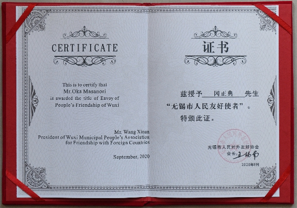 此次冈老师被授予“无锡市人民友好使者”荣誉证书和水晶奖杯,是无锡市对其这么多来以来的辛勤工作,(明日叶日本留学--无锡日本大学直通车)以及为无锡日语教育做出的重要贡献的认可,不仅是其个人的荣誉,也是所有吉川明日叶人的骄傲,我们将继续做好我们的本职工作,化荣誉为动力,继续为所有学员们提供专业的日语培训和日本留学服务,努力做到:今天,您以吉川明日叶为荣,明天,吉川明日叶以您为荣!(无锡中日国际班--明日叶)
