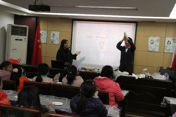 1月28日早上8点30分,孩子们开始陆续进场,短短的十几分钟时间,孩子们就已经坐满了整个教室,现场成为了一片欢乐的海洋!9点整,我们的主人公老师出场拉!她就是来自无锡日语俱乐部的小钟老师,小钟老师可爱又温柔的长相是非常受孩子们欢迎的哦!