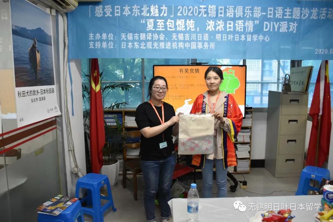活动的**后,无锡吉川日语-明日叶日本留学中心的孙校长向2位前来参加活动的日本友人颁发了日语俱乐部的纪念品,向日本东北文化机构的2位老师颁发了端午节的粽子礼包,向3月份前往参加日语防疫志愿者的姐妹们颁发了荣誉证书。